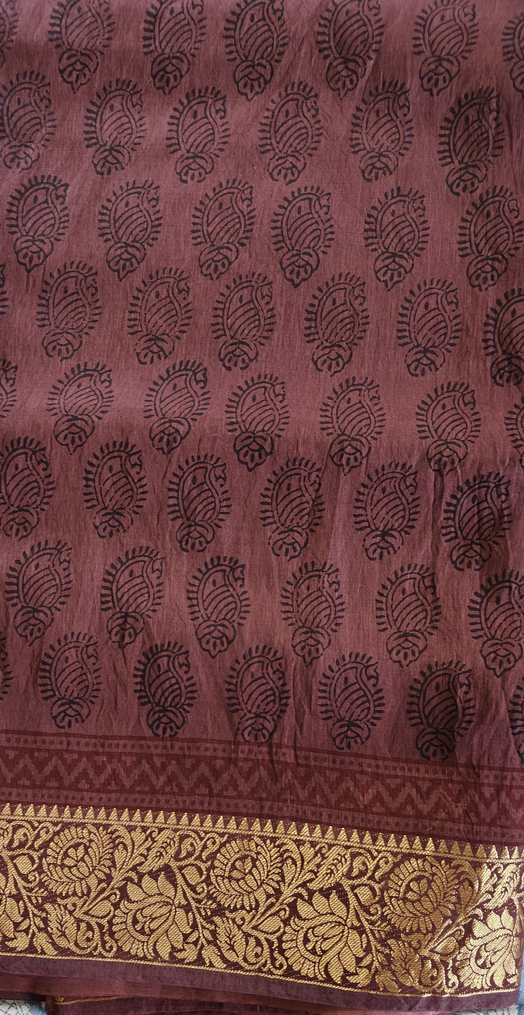 Step into timeless elegance with our Bagh Block Printed Exclusive Saree, crafted meticulously on luxurious Dola Silk.