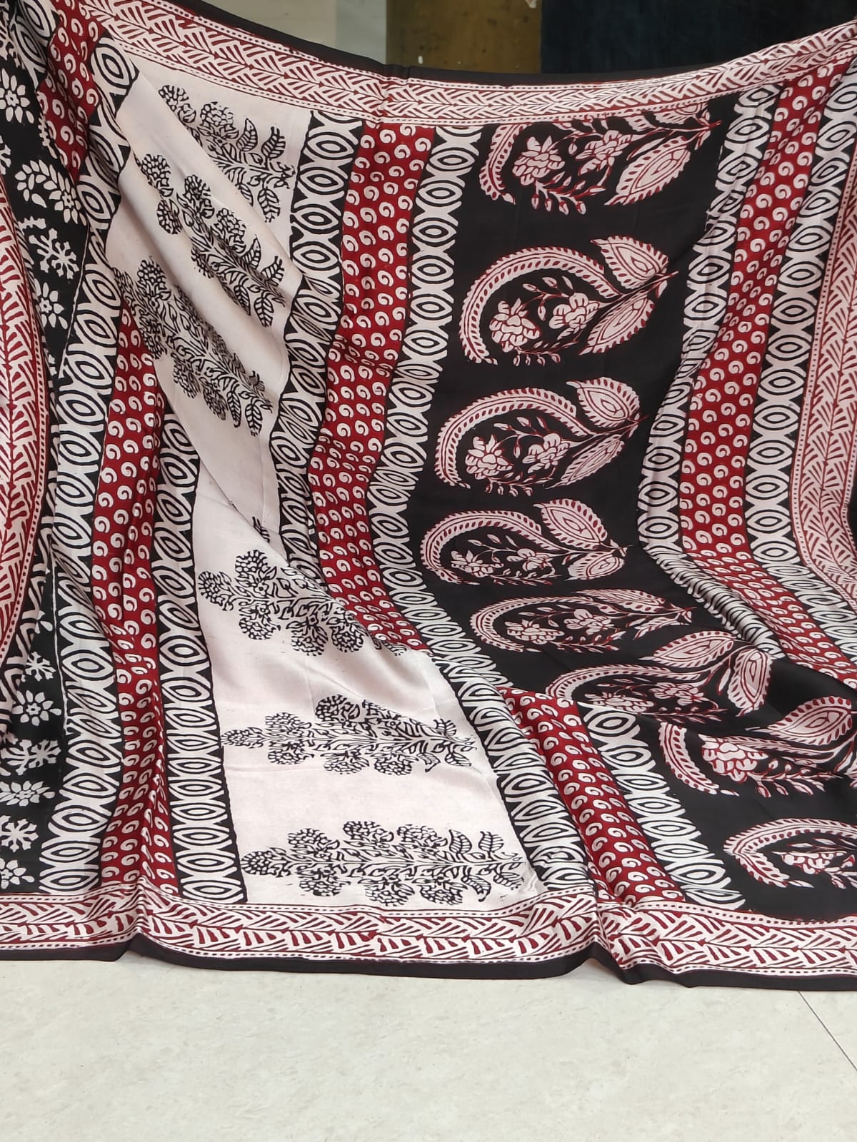 Handcrafted Uniqueness: No two sarees are identical. The subtle variations in the hand-block process are a testament to the artisan's touch.