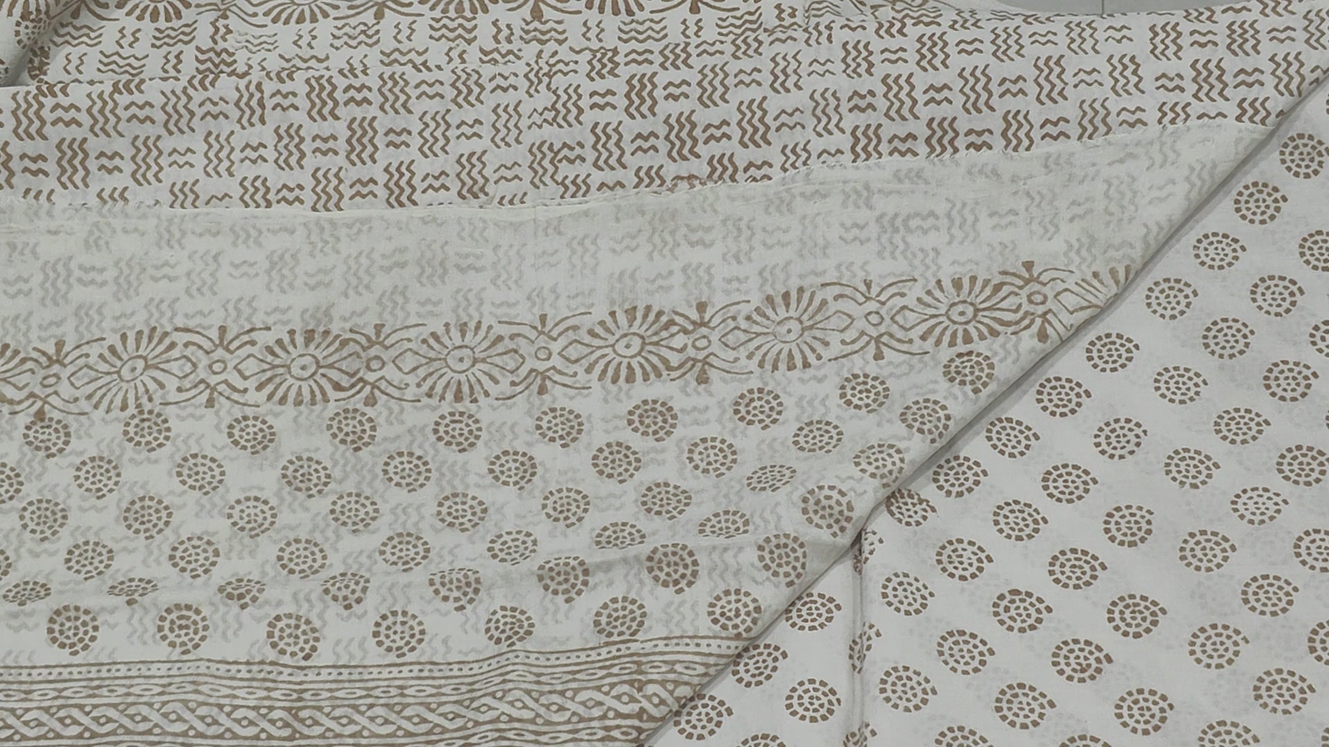 Off White Bagh Block suit material( Pure Cotton) summer wear geometric