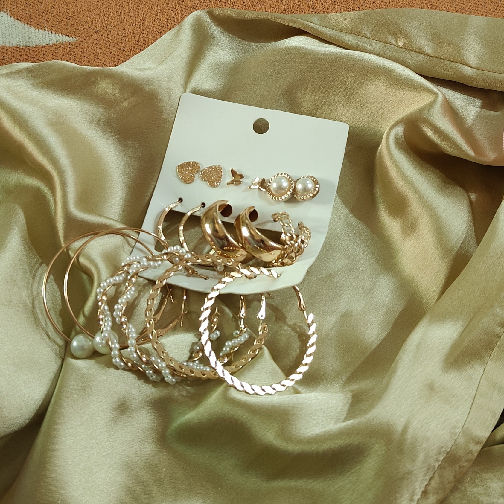 Transform your look with our Set of 9 Golden Tending Korean Earrings! These earrings will add a touch of elegance and style to any outfit. Made from high-quality materials, each pair features unique and trendy designs that are perfect for any occasion. Elevate your style game with these must-have accessories! Buy 9 at the price of One Earring